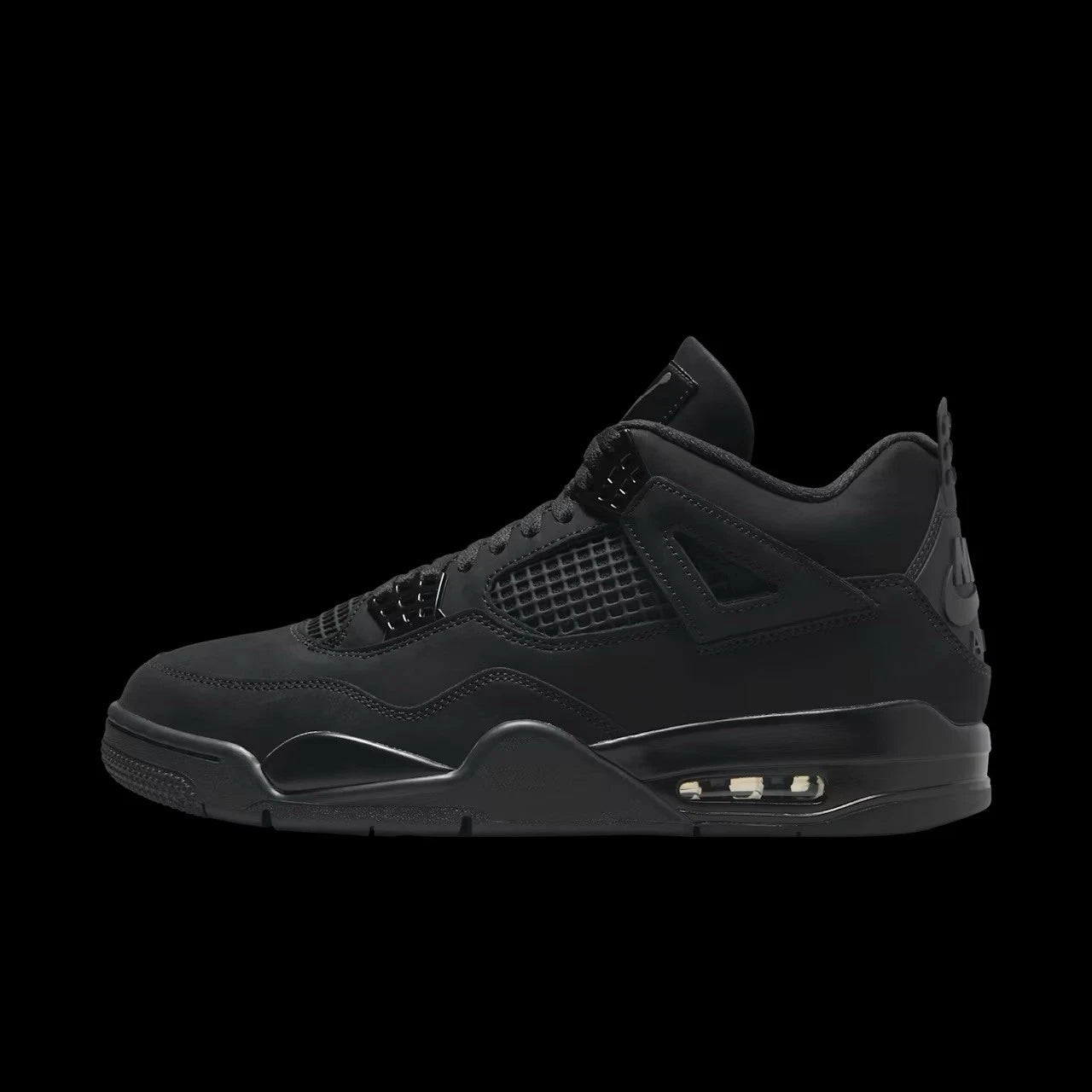 Underneath, the classic Black Graphite midsole houses the visible Air-Sole unit, ensuring the signature comfort and impact protection the Jordan 4 is known for. With its versatile "Black Cat" persona—inspired by one of Michael Jordan’s most famous nicknames—this sneaker remains a cornerstone for collectors and minimalist enthusiasts alike.